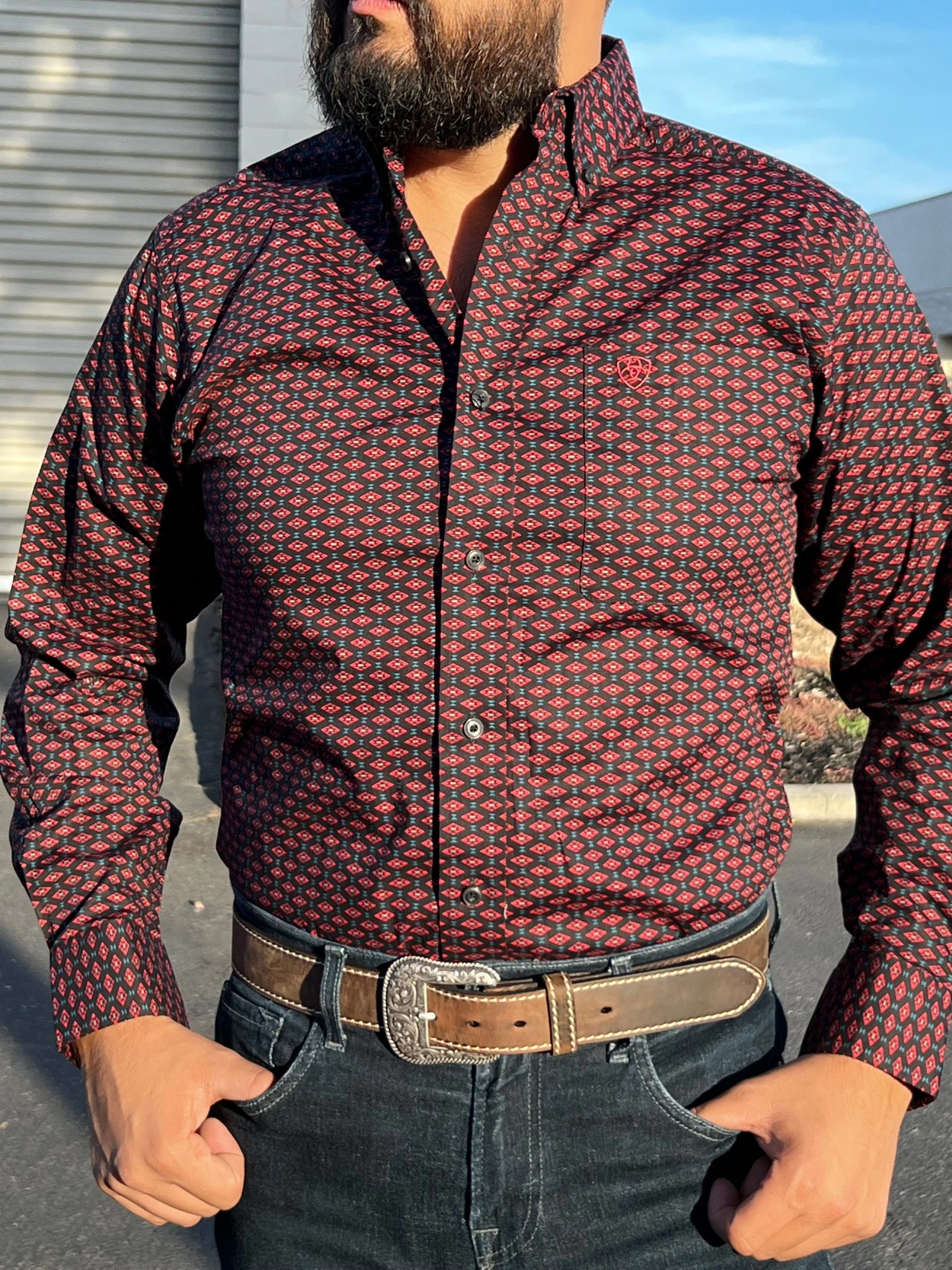 Ariat Kayne Black/Red Long Sleeve Fitted Shirt